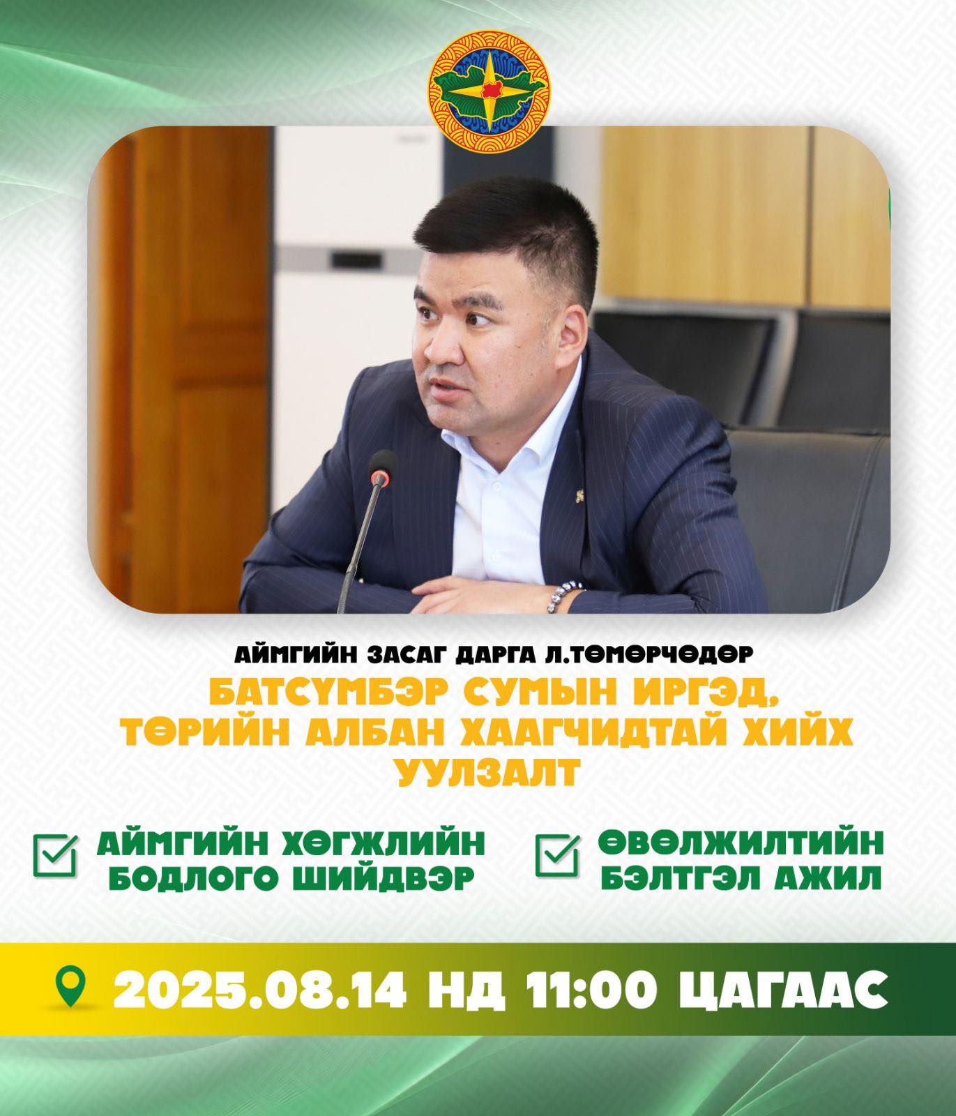 Иргэдийг хүрэлцэн ирэхийг урьж байна 2025.08.14 нд 11:00 цагаас
