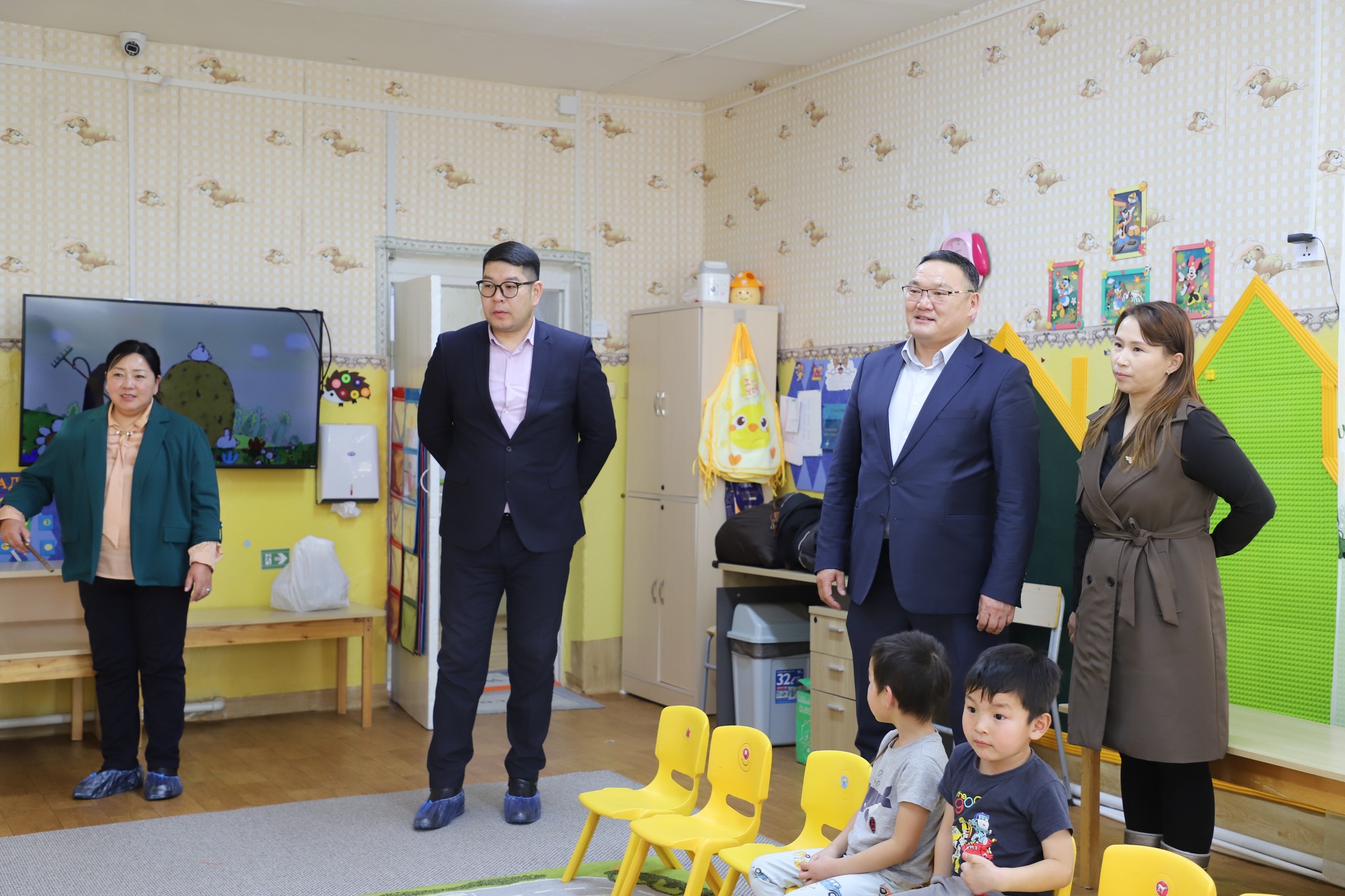 Аймгийн удирдлагуудыг ажиллах үеэр цэцэрлэгийн эрхлэгч тулгамдаж байгаа асуудлаа дуулгаад авна лээ. 1981 онд ашиглалтад орсон, насжилт өндөртэй, газар хөдлөлтийн улмаас хэд хэдэн газартаа цууралт өгсөн, 2018, 2024 онуудад үерт орсон барилгадаа их засвар хийлгэх, биеийн тамир, урлаг заалаа өргөтгөх, гадна хашаагаа янзалж тохижуулах, есөн бүлгийн 284 бяцхан хүүхдүүдээ стандартын шаардлага хангасан Steam тоглоомоор хангах шаардлагатай байгаагаа уламжилсан юм.