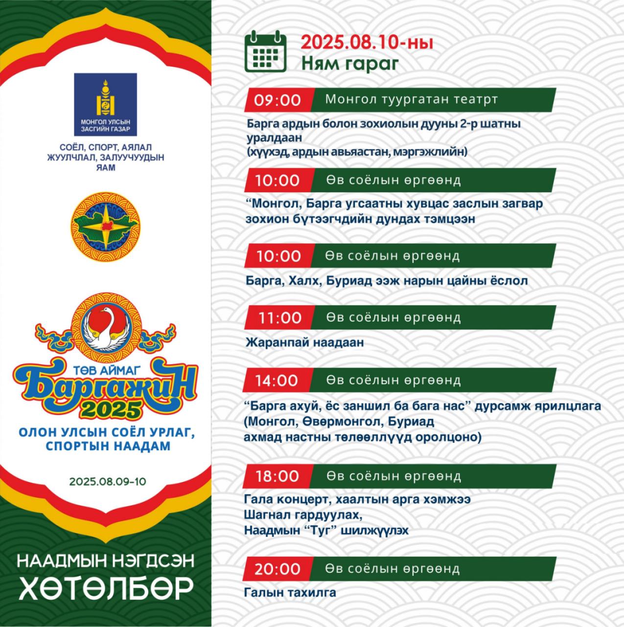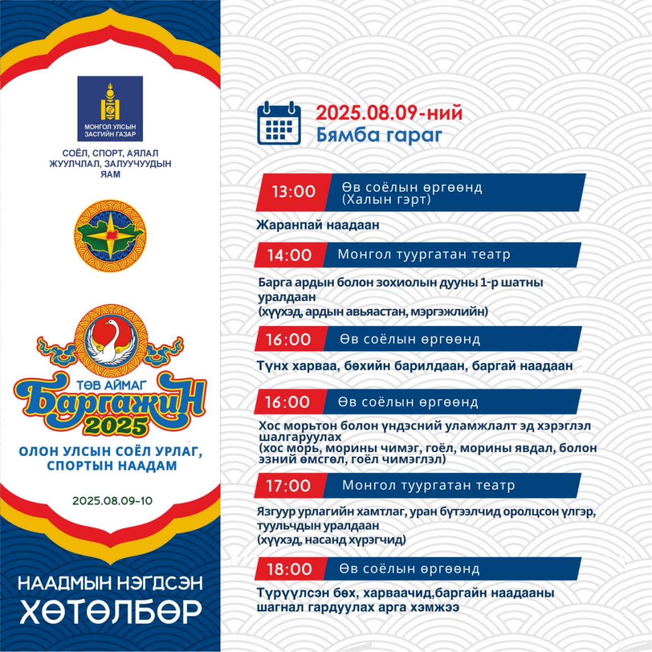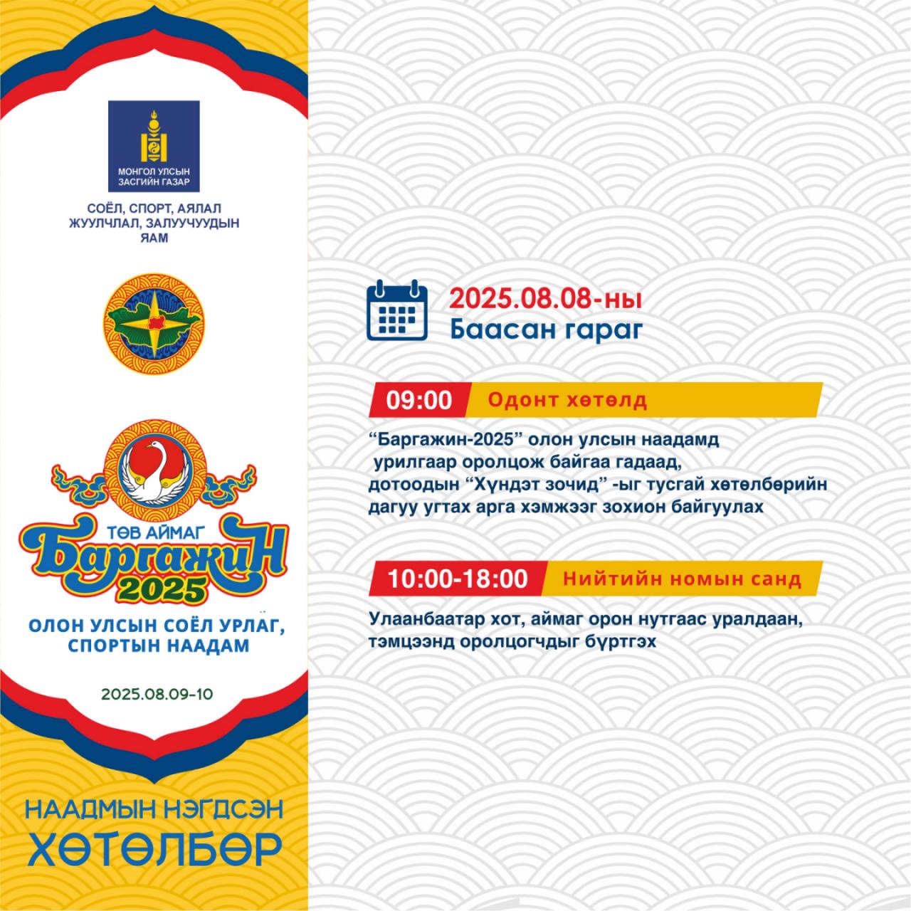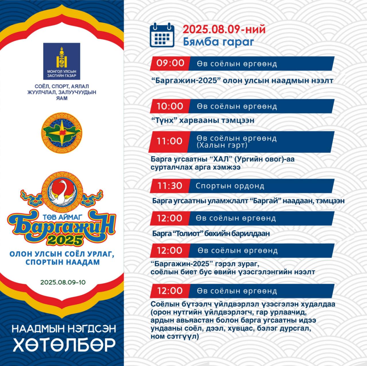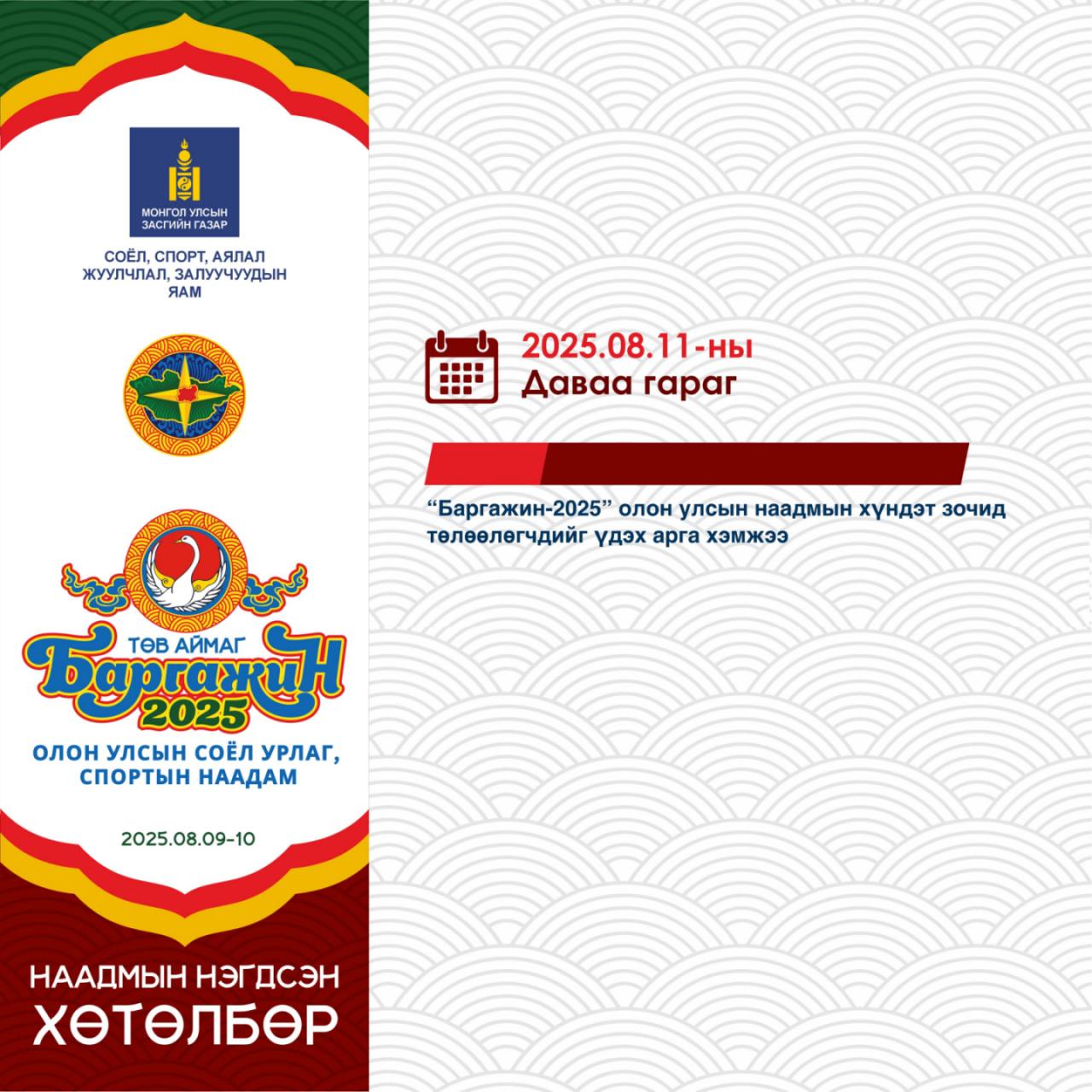 БАРГАЖИН 2025 ОЛОН УЛСЫН СОЁЛ УРЛАГ, СПОРТЫН НААДМЫН НЭГДСЭН ХӨТӨЛБӨР