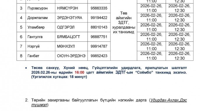 2026.02.26-НЫ ӨДӨР ЗОХИОН БАЙГУУЛАХ СОНГОН ШАЛГАРУУЛАЛТ, ТУСГАЙ ШАЛГАЛТЫН ХУВААРЬ:...