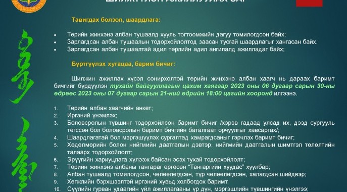 ТӨРИЙН ЖИНХЭНЭ АЛБАН ХААГЧИЙГ ШИЛЖҮҮЛЭН АЖИЛЛУУЛАХ ЗАР
